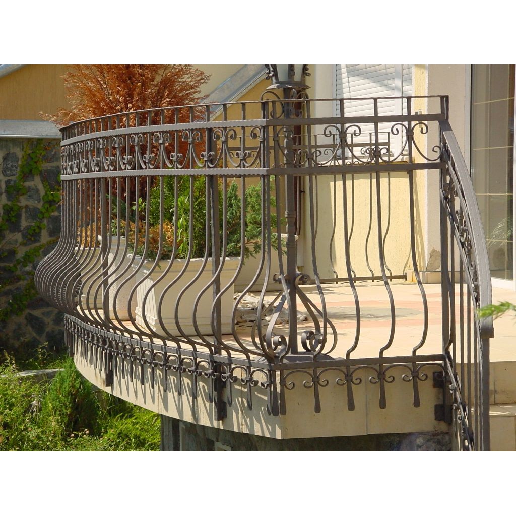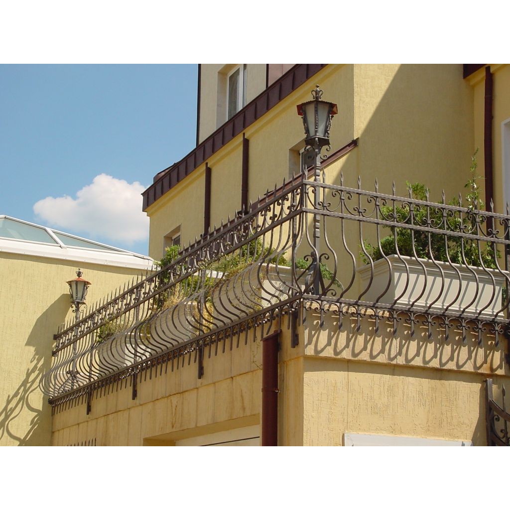 Balkonhek en balustrade van vast smeedijzer.